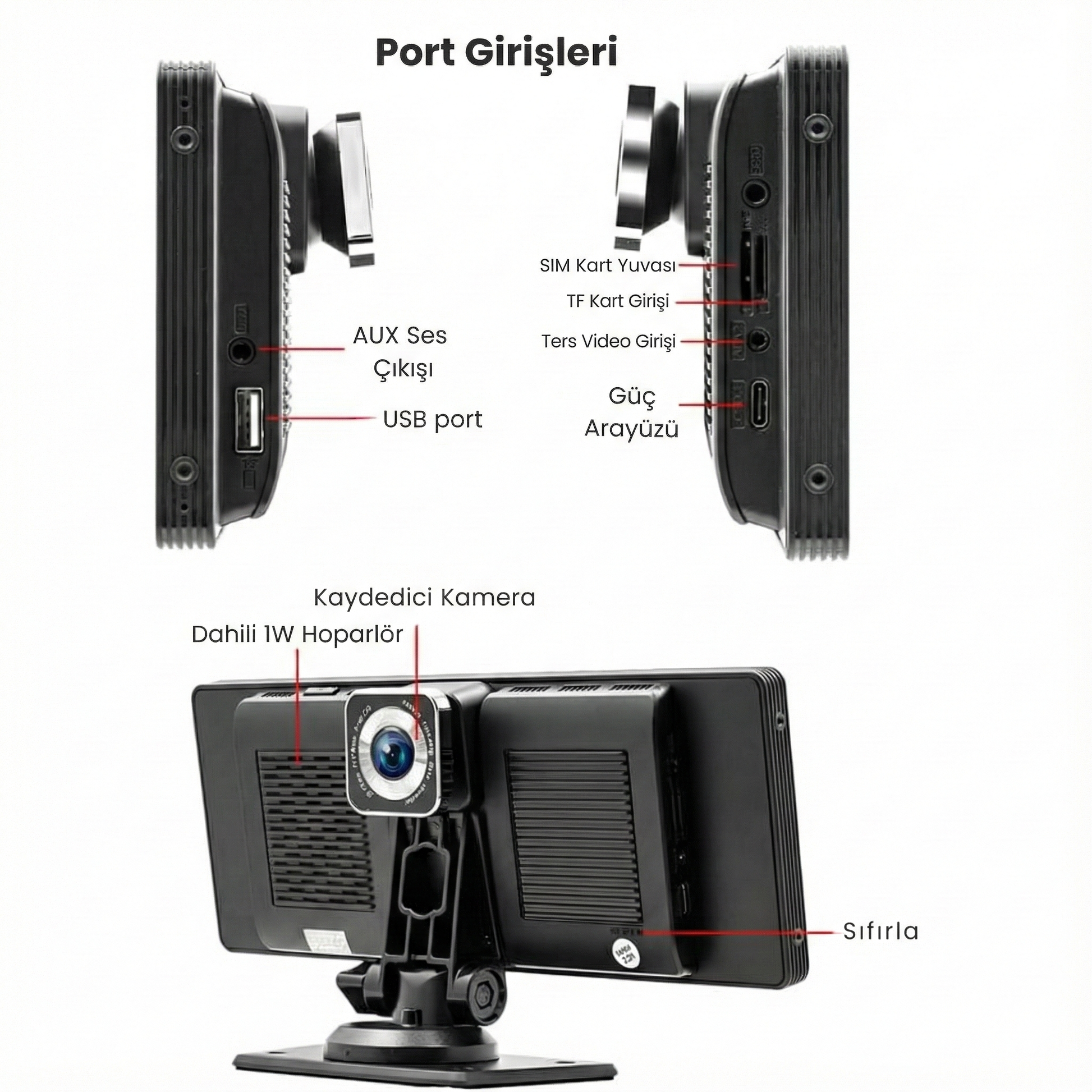 Ekranlı Carplay Apple Android Uyumlu 10.2 inç 4K Görüntü Arka/Ön Görüş Kameralı Araç Ekranı